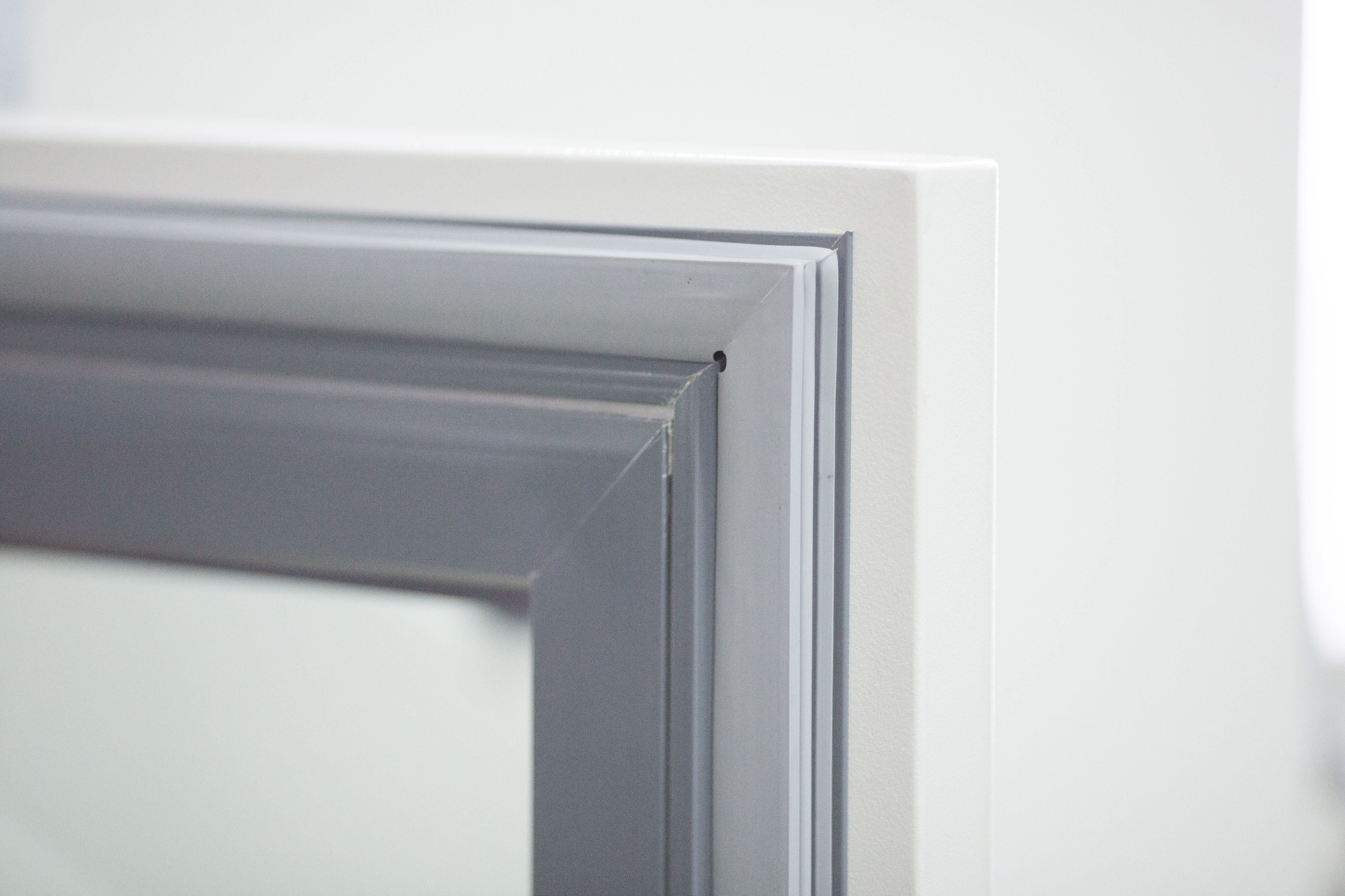 Drie laag geharde glazen deur met verwarming om condensatie te voorkomen.